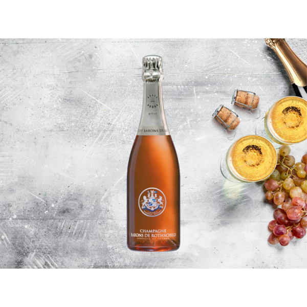 Champagne Barons de Rothschild Brut, heldere kleur, lichtgeel. Aangenaam rijp fruit in de neus met tonen van peer. Maar ook brioche en amandel. Zachte en soepele inzet, rijk en zeer zuiver, naast een tintelende frisheid ook wat rijpe tonen van eerder genoemde brioche. Elegante mousse, aangenaam droog met een lange finale.De chardonnay druiven zijn voornamelijk afkomstig uit Grand Cru wijngaarden uit de Côte des Blancs, de 2 rode druiven uit Verzenay, Ay, Mareuil-sur-Ay en Bouzy. Na vergisting op roestvrij stalen tanks wordt 40% reserve wijn uit oudere jaargangen toegevoegd. Dan wordt de wijn gebotteld onder toevoeging van de ‘liqueur de tirage’, een combinatie van gistcellen, wijn en suiker. De tweede vergisting in de fles en rijping ‘sur lattes’ duurt 36 maanden. Zo ontstaat de fijne mousse, het gevormde depot wordt via een speciaal procedé verwijderd. Voor de definitieve afsluiting van de fles wordt de ‘dosage’ toegevoegd, deze Brut bevat 6 gram suiker/liter. De minimale rijping van de wijn in de kelders is daarna nog 6 maanden