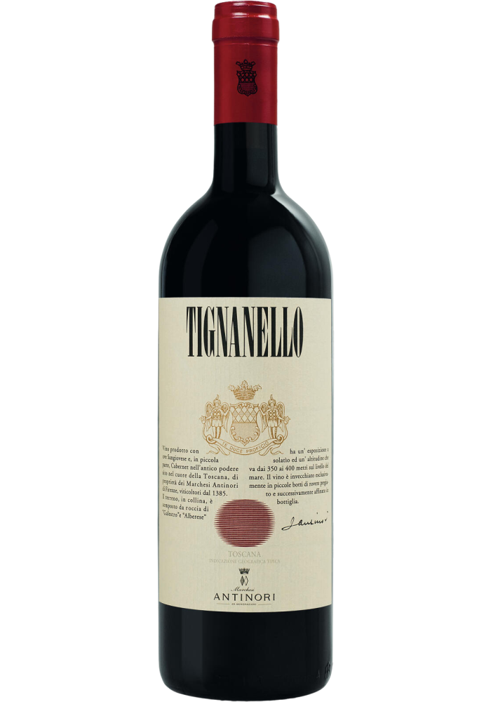 Tignanello is dé icoonwijn van Antinori en eigenlijk vanheel Italië. Sinds de eerste oogst in 1971 is de wijn eenwereldwijd succes. Het is de grondlegger van de klassiekeSuper Tuscans en staat nog altijd aan de absolute top vanhet wereldwijde wijnlandschap. Tignanello heeft een langegeschiedenis en is zeer invloedrijk geweest in dewijnwereld. Zo was het de eerste Sangiovese die in kleineeikenhouten vaten rijpte en de eerste moderne rode wijndie gebruik maakte van niet-traditionele italiaansedruivenrassen zoals Cabernet Sauvignon en CabernetFranc in de blend. De productie van Tignanello is beperkttot alleen de meest gunstige jaargangen. Hierdoor werd erniet geproduceerd in 1972, 1973, 1974, 1976, 1984, 1992 en2002. Gelukkig zijn de technieken van het vinificatieproces in de 20e eeuw zo verbeterd dat echt ongunstigejaargangen zeldzaam zijn